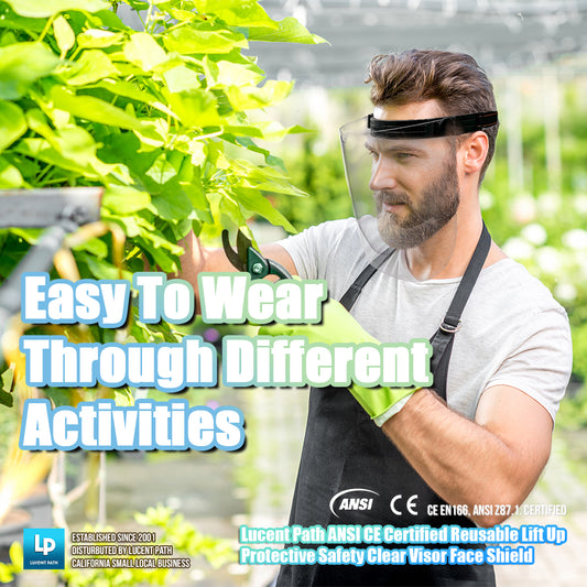 5 Packs Lucent Path ANSI CE Certified Reusable Lift Up Protective Safety Clear Visor Face Shield with an Adjustable Headband